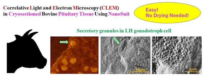 A novel method of correlative light and electron microscopy in cryosectioning of bovine anterior pituitary tissue using NanoSuit CLEMHiroya KADOKAWA, Hideya KAWASAKI